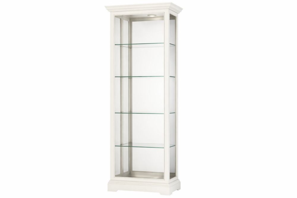 Glass Paneled Oak Wood Display Cabinet with Tempered Glass Shelves