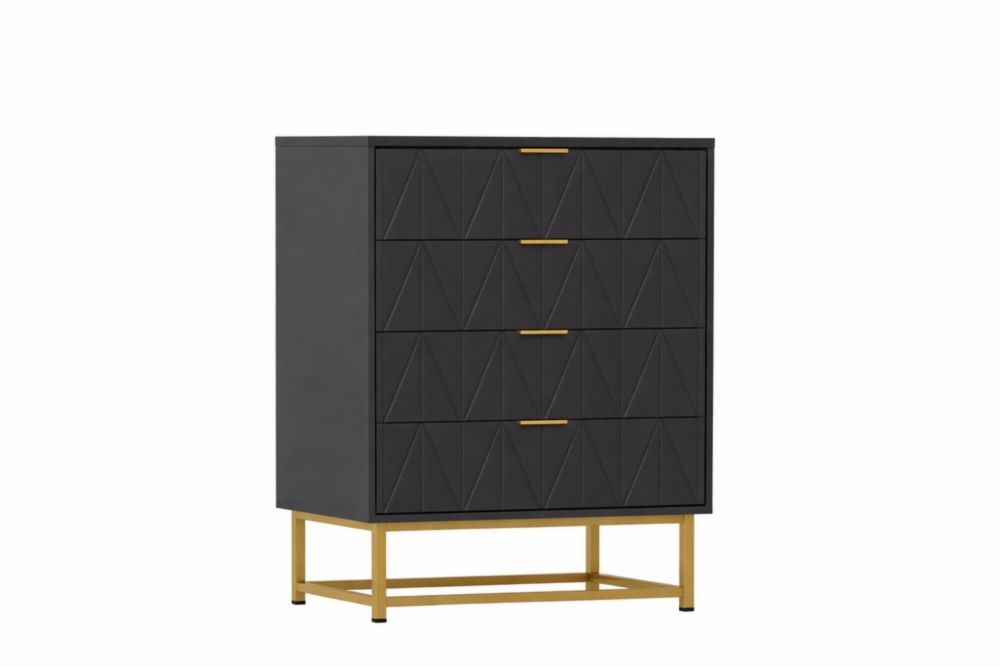 Black Geometric Pattern 4-Drawer Chest with steel Frame