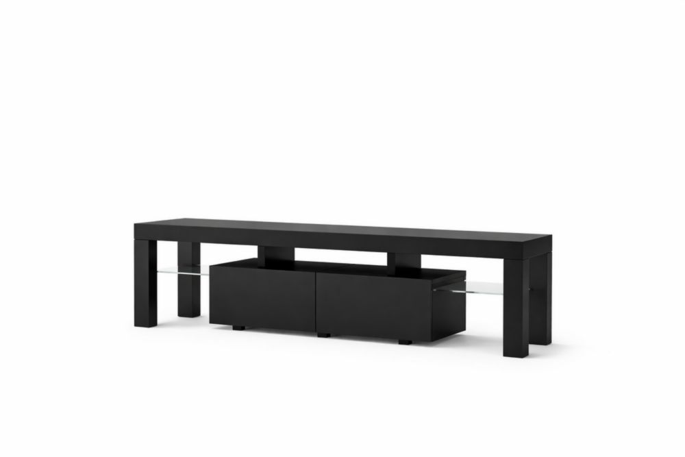 Black Wood Glass TV Stand with Storage 180x40x45 cm