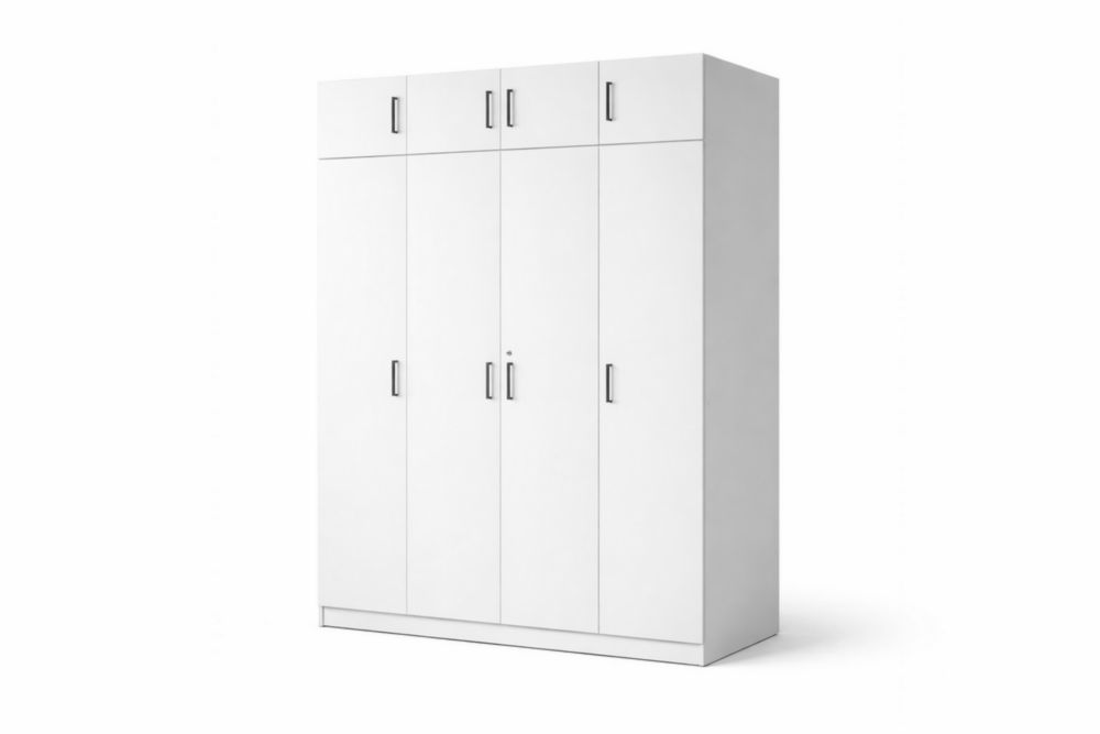 White Wooden Storage Cabinet with Drawer and Double Doors