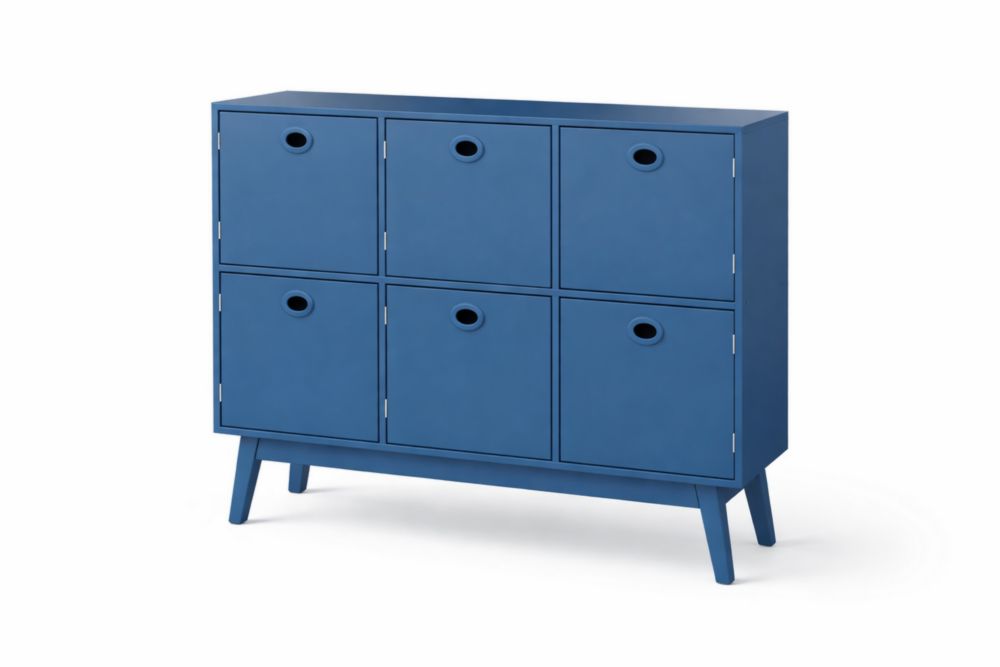 Blue MDF Cabinet with Six Doors 80cm x 40cm x 90cm